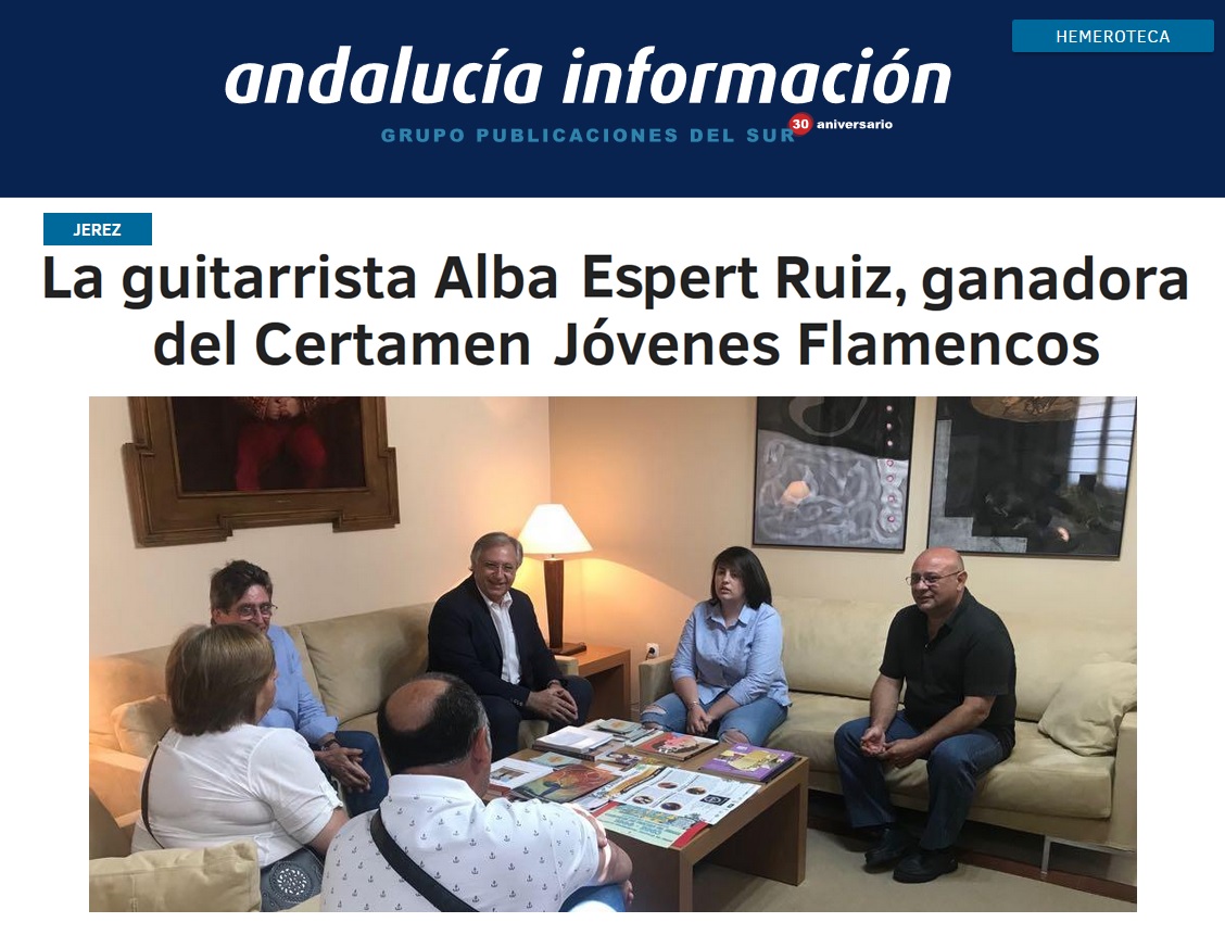 El teniente de alcaldesa ha felicitado a la brillante guitarrista jerezana, que se encuentra actualmente cursando estudios en el Conservatorio de Música de Córdoba ‘Rafael Orozco’. “Para Jerez tiene que ser un motivo de orgullo contar con una guitarrista de este nivel que ha conseguido que, después de 16 ediciones, el primer premio ‘Vicente Amigo’ se lo lleve una mujer”.