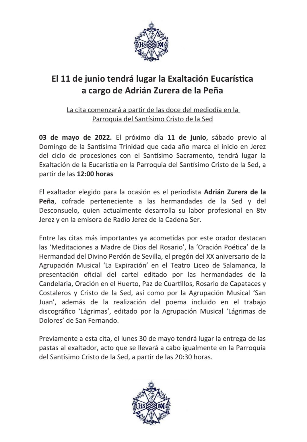Exaltación Eucarística (Pregón del Corpus Christi)