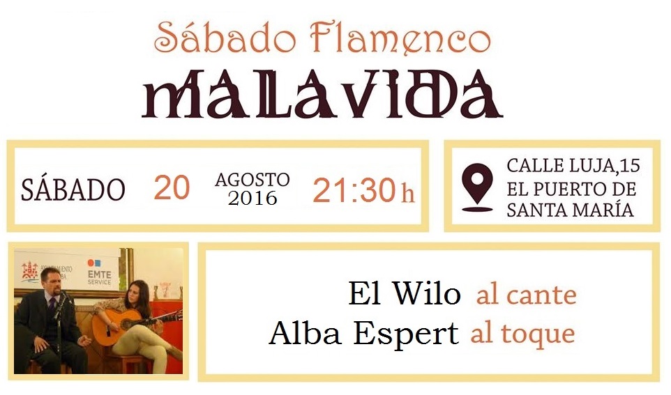 Sábado Flamenco en Sala MalaVida con "El Wilo" al cante y Alba Espert al toque (20/08/2016)