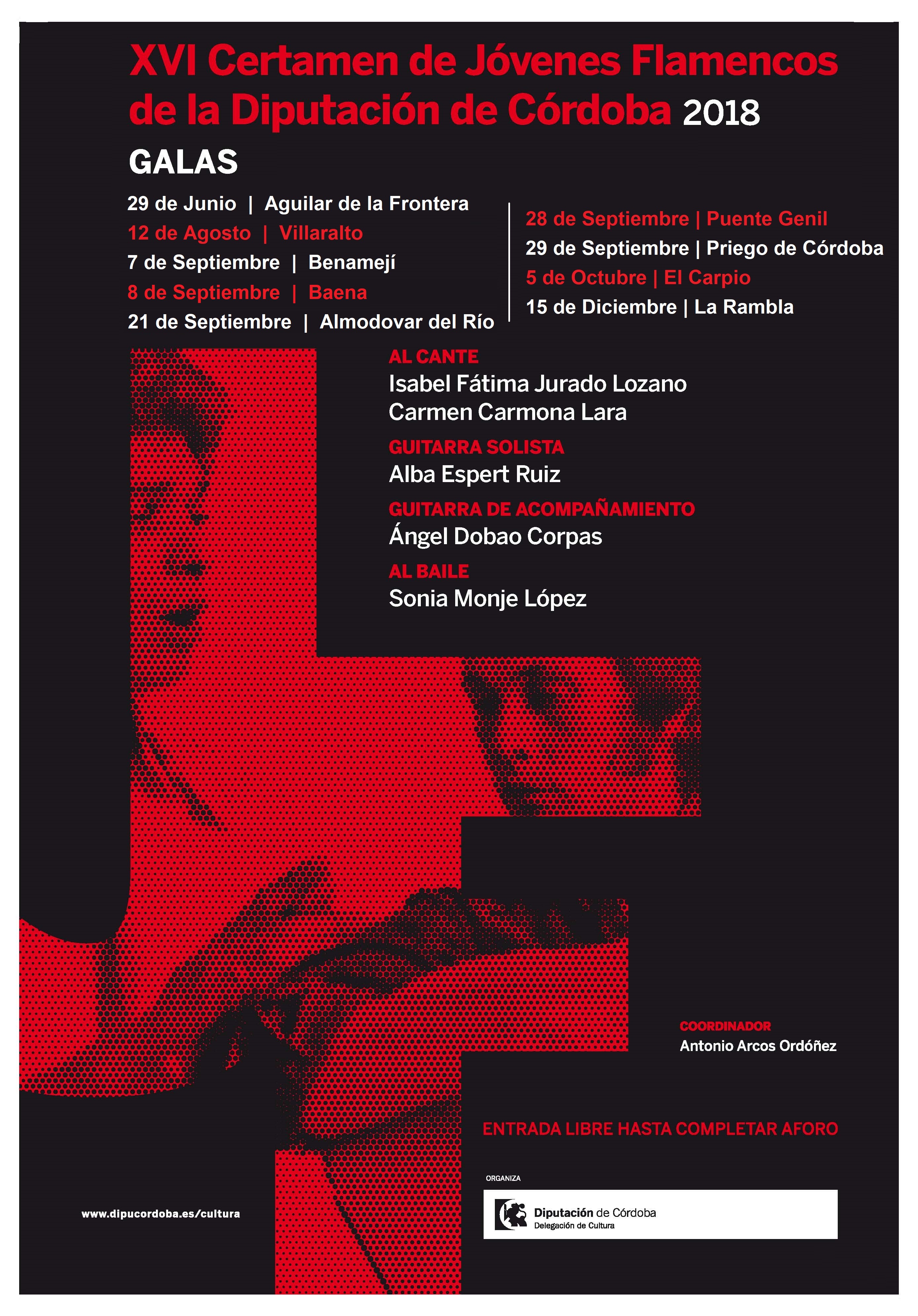 Calendar of Performances of the Provincial Circuit of Galas of the XVI Contest of Young Flamencos of the Diputación de Córdoba 2018