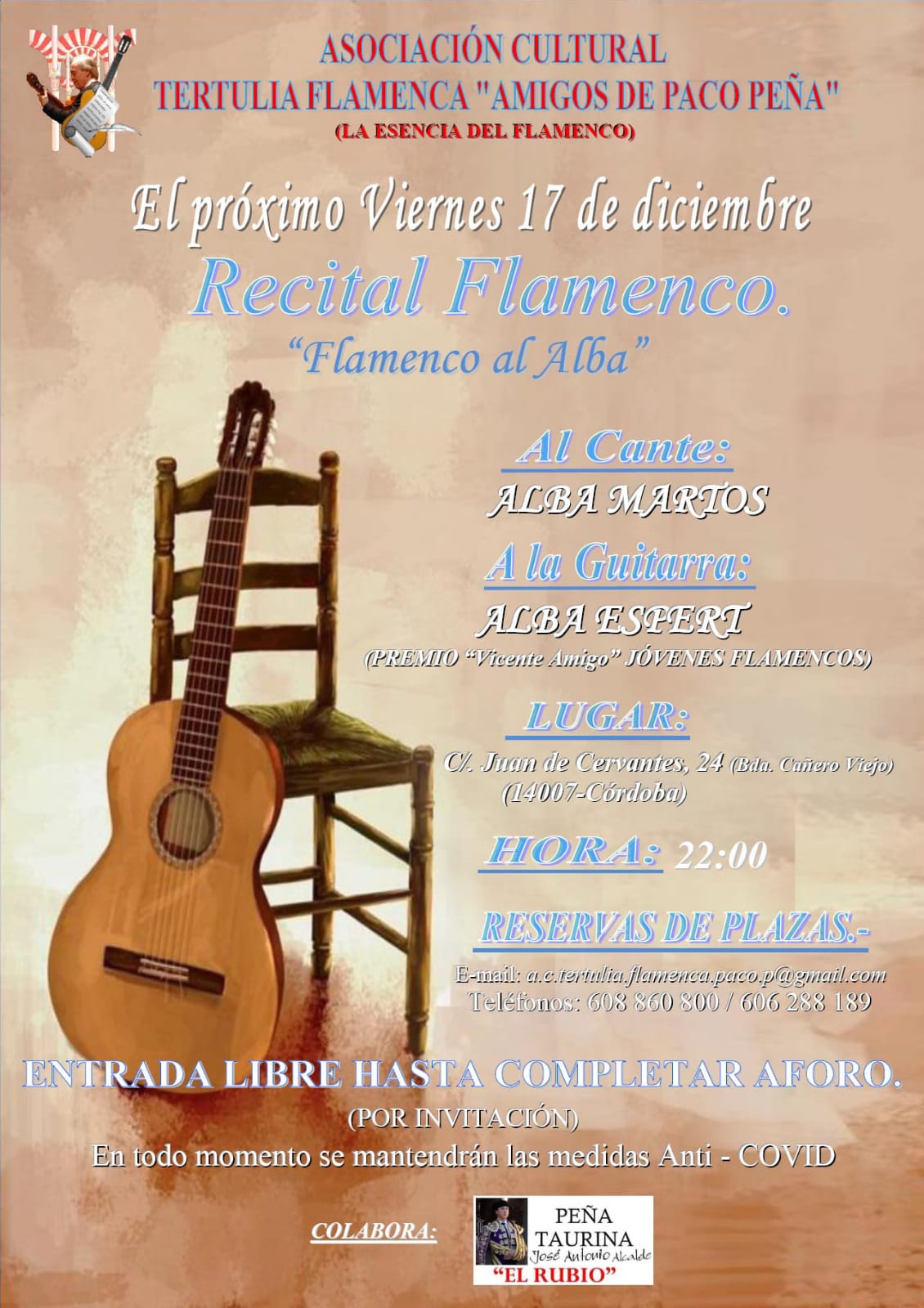 Recital de la Tertulia Flamenca "Amigos de Paco Peña" acompañando el cante de Alba Martos - Córdoba