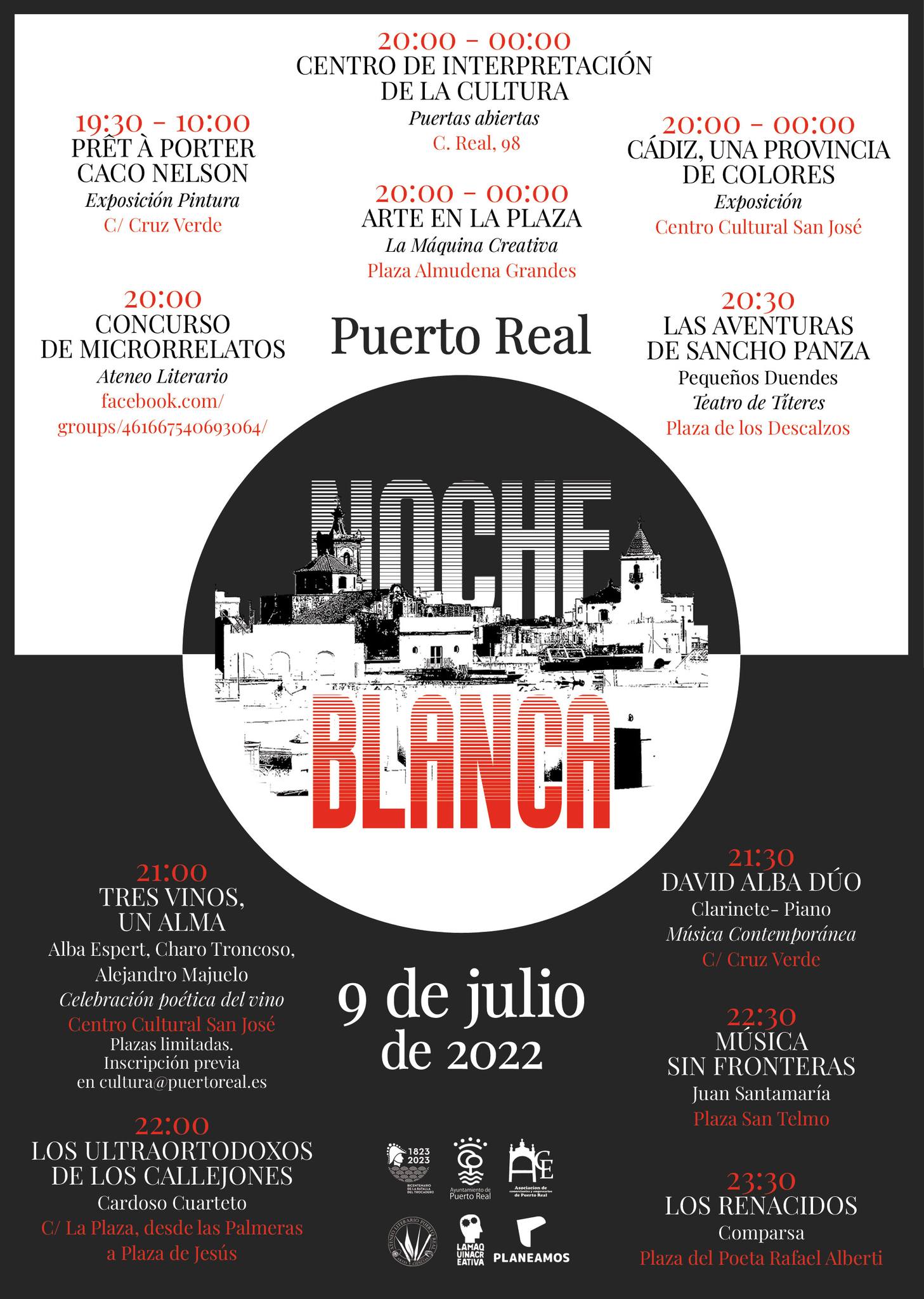 Además de en la calle, la Noche Blanca se podrá vivir en las Redes Sociales, ya que será donde el Ateneo Literario de Puerto Real inicie el Concurso de Microrrelatos, en colaboración con la Asociación de Comerciantes y Empresarios. La presidenta de ACE Puerto Real, Pilar Rosendo quiso hacer una invitación especial “a los vecinos de otros municipios de la provincia para que visiten la localidad aprovechado esta cita, y conozcan también su comercio, que tendrá un horario especial el sábado 9 de julio”, dijo.
